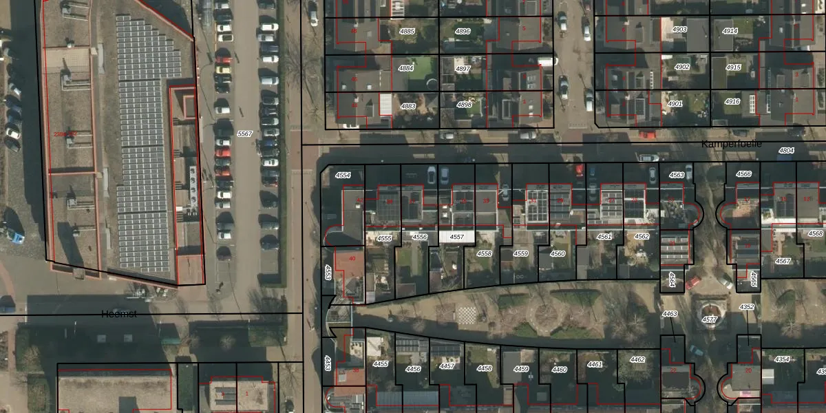 Kamperfoelie 37 is gelegen op kadastraal perceel CUI00A4556. Deze kadastrale aanduiding is uniek en wordt gebruikt door het Kadaster om eigendomsrechten en andere zakelijke rechten vast te leggen. Het perceel maakt onderdeel uit van de kadastrale gemeente Cuijk.