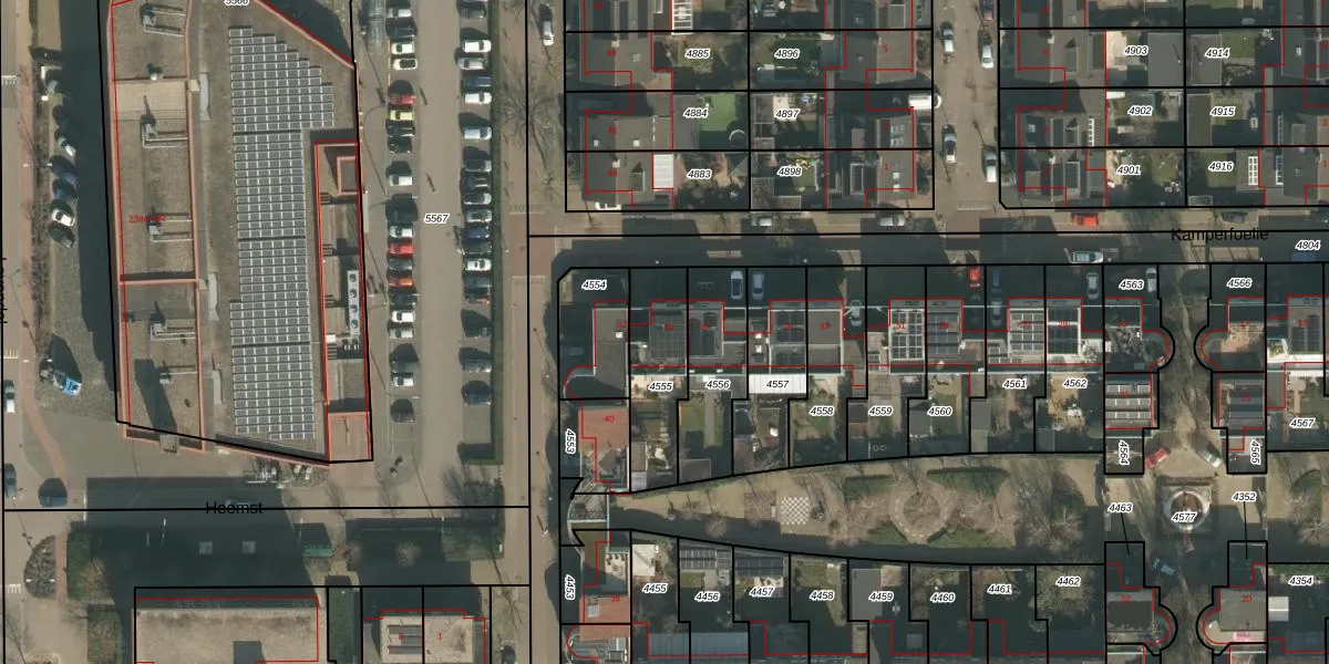 Kamperfoelie 39 is gelegen op kadastraal perceel CUI00A4555. Deze kadastrale aanduiding is uniek en wordt gebruikt door het Kadaster om eigendomsrechten en andere zakelijke rechten vast te leggen. Het perceel maakt onderdeel uit van de kadastrale gemeente Cuijk.