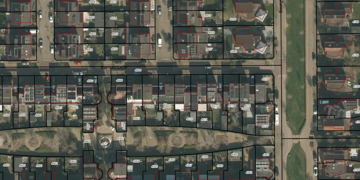 Kamperfoelie 9 is gelegen op kadastraal perceel CUI00A4570. Deze kadastrale aanduiding is uniek en wordt gebruikt door het Kadaster om eigendomsrechten en andere zakelijke rechten vast te leggen. Het perceel maakt onderdeel uit van de kadastrale gemeente Cuijk.