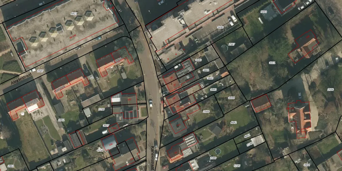 Kaneelstraat 37 is gelegen op kadastraal perceel CUI00C3441. Deze kadastrale aanduiding is uniek en wordt gebruikt door het Kadaster om eigendomsrechten en andere zakelijke rechten vast te leggen. Het perceel maakt onderdeel uit van de kadastrale gemeente Cuijk.