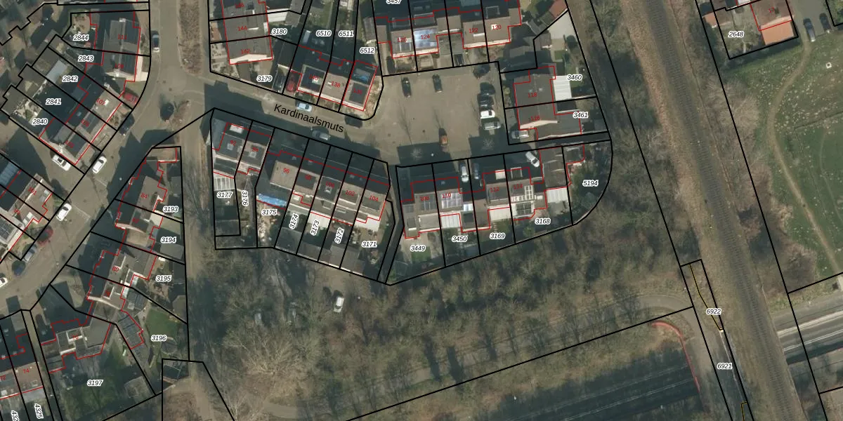Kardinaalsmuts 108 is gelegen op kadastraal perceel CUI00A3449. Deze kadastrale aanduiding is uniek en wordt gebruikt door het Kadaster om eigendomsrechten en andere zakelijke rechten vast te leggen. Het perceel maakt onderdeel uit van de kadastrale gemeente Cuijk.