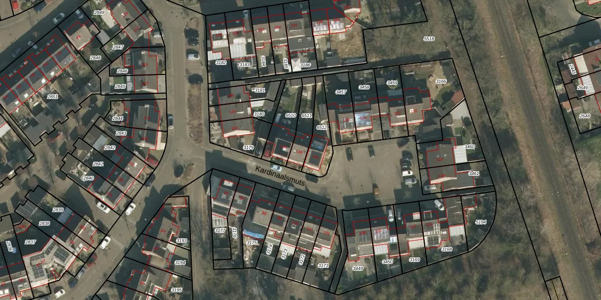 Gebruik de zoekbalk of klik op een perceel voor informatie over de adressen binnen dit perceel.