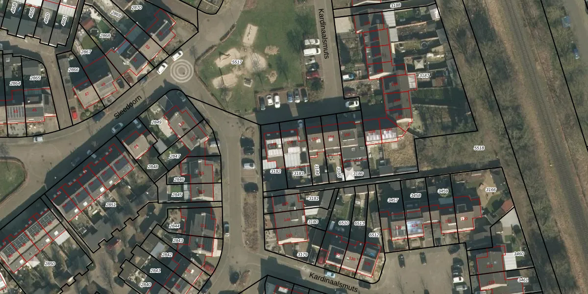 Het perceel waarop Kardinaalsmuts 150 staat heeft een oppervlakte van 196 m². Dit is een middelgroot perceel. De perceeloppervlakte wordt geregistreerd door het Kadaster. Gedetailleerde informatie over de maten van dit perceel kunt u vinden in het rapport Kadastrale kaart met maatvoering van Kardinaalsmuts 150.