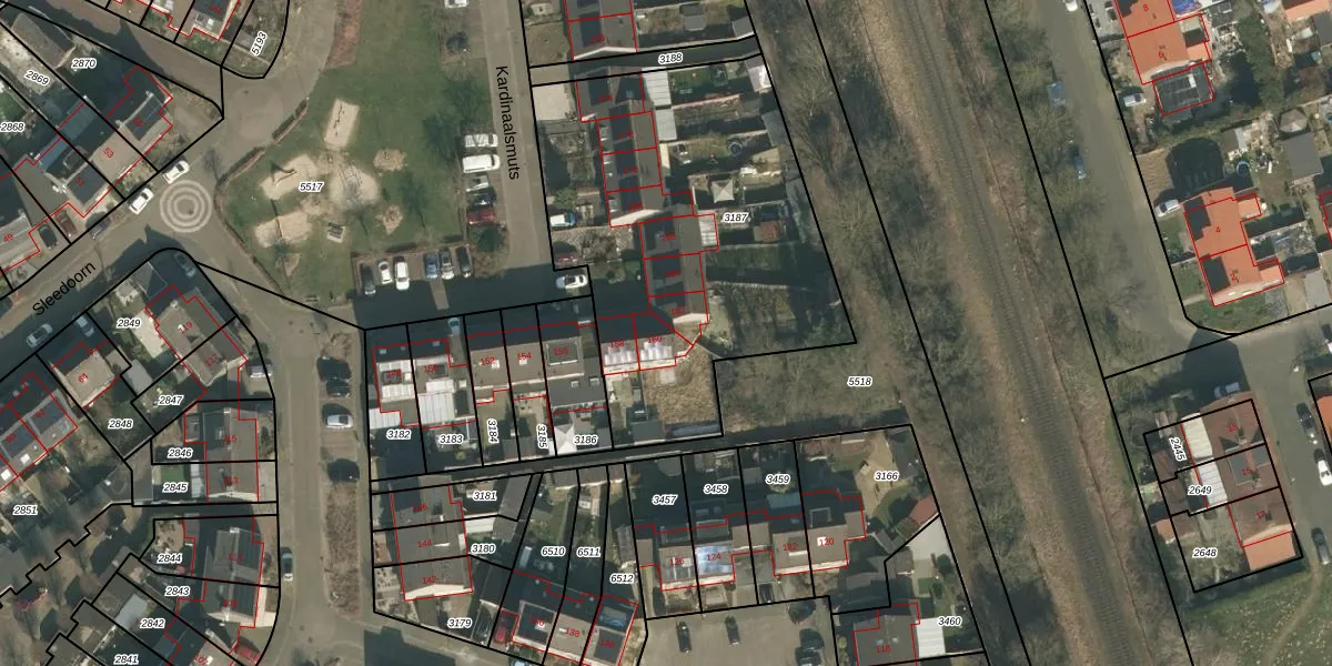 Het perceel waarop Kardinaalsmuts 160 staat heeft een oppervlakte van 1850 m². Dit is een zeer groot perceel. De perceeloppervlakte wordt geregistreerd door het Kadaster. Gedetailleerde informatie over de maten van dit perceel kunt u vinden in het rapport Kadastrale kaart met maatvoering van Kardinaalsmuts 160.