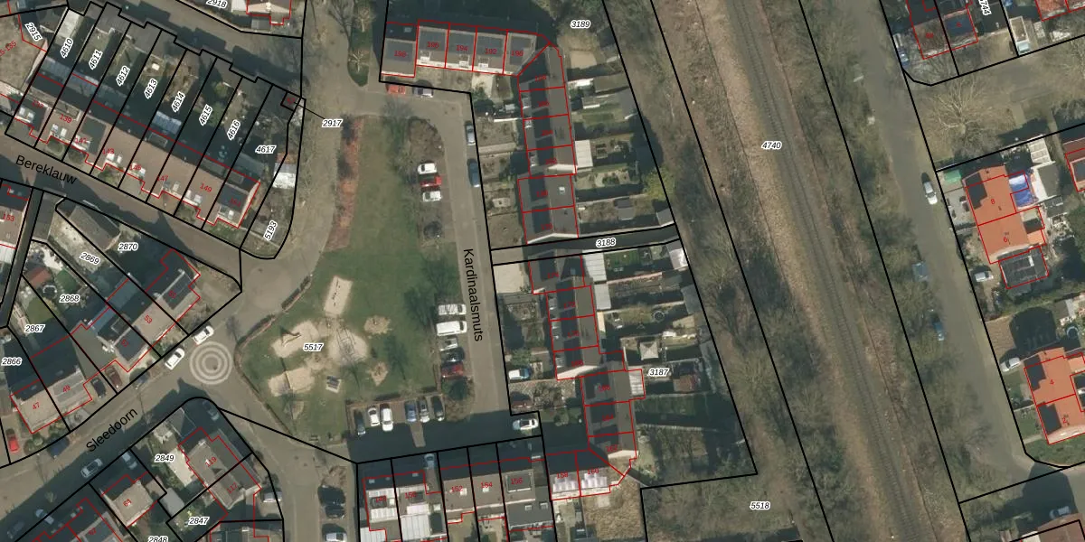 Het perceel waarop Kardinaalsmuts 174 staat heeft een oppervlakte van 1850 m². Dit is een zeer groot perceel. De perceeloppervlakte wordt geregistreerd door het Kadaster. Gedetailleerde informatie over de maten van dit perceel kunt u vinden in het rapport Kadastrale kaart met maatvoering van Kardinaalsmuts 174.
