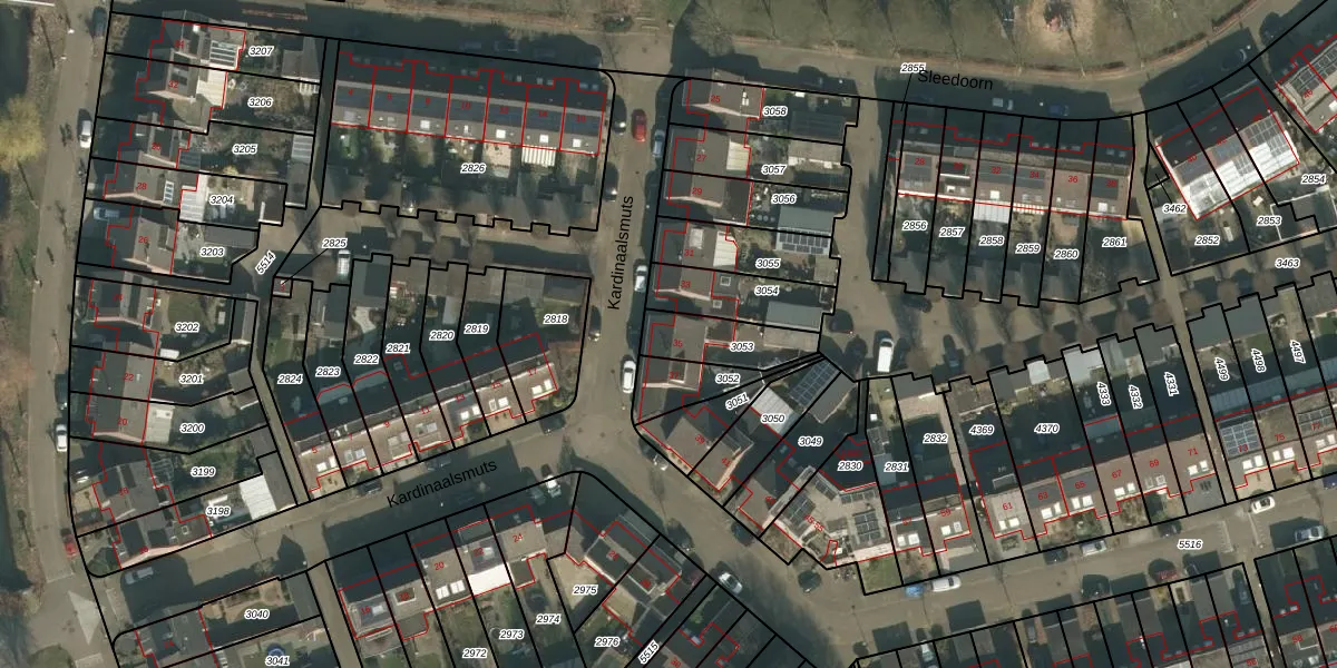 Het perceel waarop Kardinaalsmuts 35 staat heeft een oppervlakte van 168 m². Dit is een middelgroot perceel. De perceeloppervlakte wordt geregistreerd door het Kadaster. Gedetailleerde informatie over de maten van dit perceel kunt u vinden in het rapport Kadastrale kaart met maatvoering van Kardinaalsmuts 35.