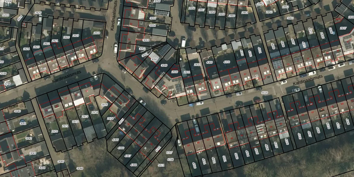 Kardinaalsmuts 53 is gelegen op kadastraal perceel CUI00A2830. Deze kadastrale aanduiding is uniek en wordt gebruikt door het Kadaster om eigendomsrechten en andere zakelijke rechten vast te leggen. Het perceel maakt onderdeel uit van de kadastrale gemeente Cuijk.