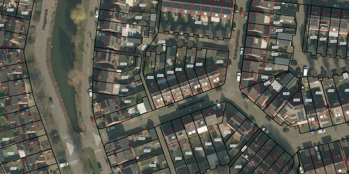 Kardinaalsmuts 9 is gelegen op kadastraal perceel CUI00A2822. Deze kadastrale aanduiding is uniek en wordt gebruikt door het Kadaster om eigendomsrechten en andere zakelijke rechten vast te leggen. Het perceel maakt onderdeel uit van de kadastrale gemeente Cuijk.