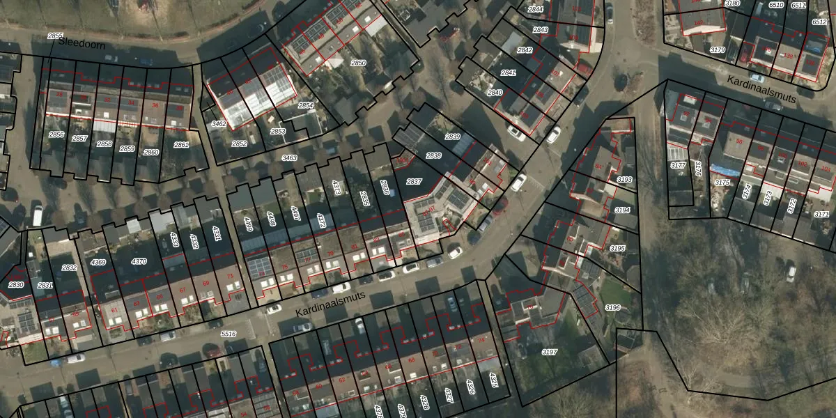 Het perceel waarop Kardinaalsmuts 95 staat heeft een oppervlakte van 304 m². Dit is een groot perceel. De perceeloppervlakte wordt geregistreerd door het Kadaster. Gedetailleerde informatie over de maten van dit perceel kunt u vinden in het rapport Kadastrale kaart met maatvoering van Kardinaalsmuts 95.