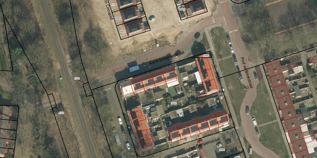 Het perceel waarop Karel Doormanstraat 3 staat heeft een oppervlakte van 3185 m². Dit is een zeer groot perceel. De perceeloppervlakte wordt geregistreerd door het Kadaster. Gedetailleerde informatie over de maten van dit perceel kunt u vinden in het rapport Kadastrale kaart met maatvoering van Karel Doormanstraat 3.