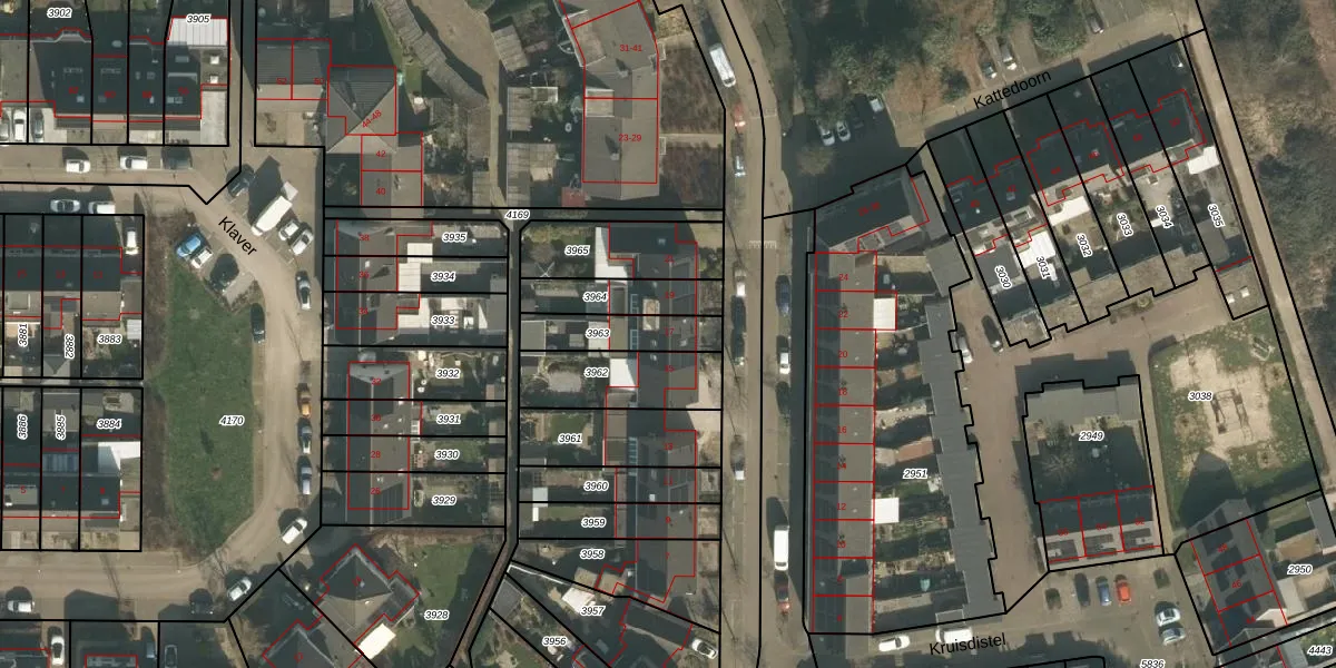 Het perceel waarop Kattedoorn 17 staat heeft een oppervlakte van 166 m². Dit is een middelgroot perceel. De perceeloppervlakte wordt geregistreerd door het Kadaster. Gedetailleerde informatie over de maten van dit perceel kunt u vinden in het rapport Kadastrale kaart met maatvoering van Kattedoorn 17.