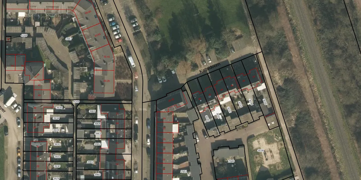 Kattedoorn 26 is gelegen op kadastraal perceel CUI00A2951. Deze kadastrale aanduiding is uniek en wordt gebruikt door het Kadaster om eigendomsrechten en andere zakelijke rechten vast te leggen. Het perceel maakt onderdeel uit van de kadastrale gemeente Cuijk.