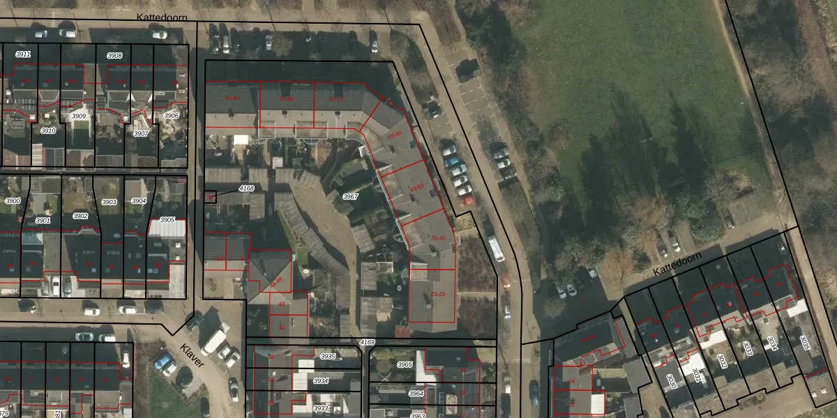 Kattedoorn 47 is gelegen op kadastraal perceel CUI00A3967. Deze kadastrale aanduiding is uniek en wordt gebruikt door het Kadaster om eigendomsrechten en andere zakelijke rechten vast te leggen. Het perceel maakt onderdeel uit van de kadastrale gemeente Cuijk.