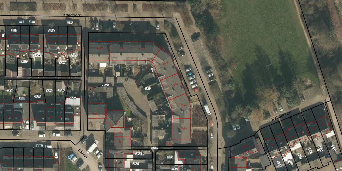 Kattedoorn 49 is gelegen op kadastraal perceel CUI00A3967. Deze kadastrale aanduiding is uniek en wordt gebruikt door het Kadaster om eigendomsrechten en andere zakelijke rechten vast te leggen. Het perceel maakt onderdeel uit van de kadastrale gemeente Cuijk.