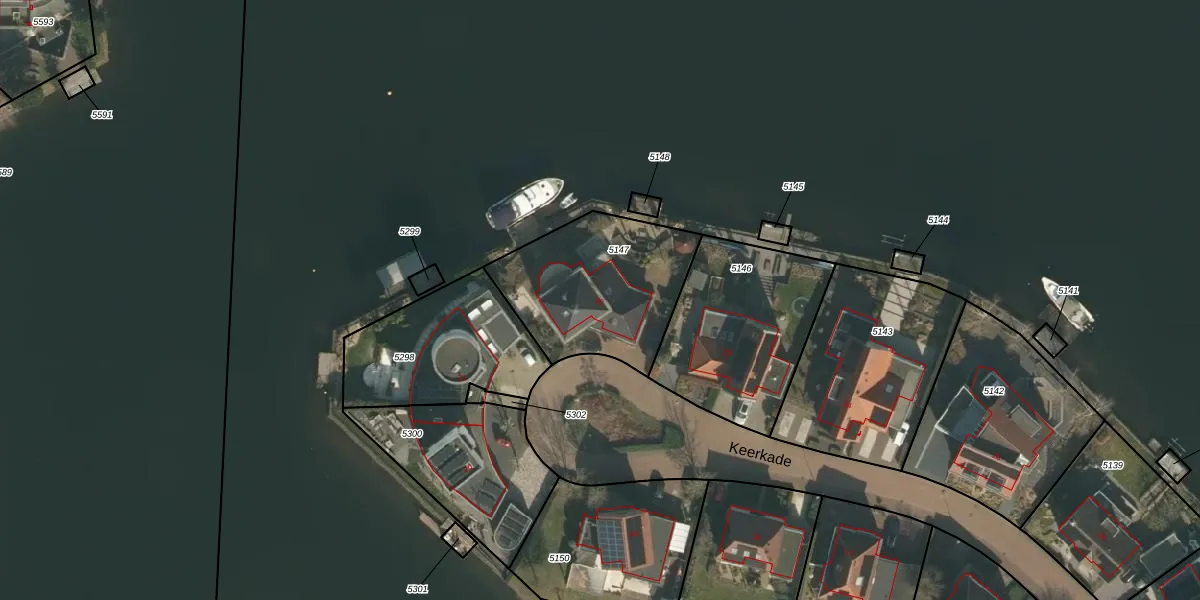 Het perceel waarop Keerkade 22 staat heeft een oppervlakte van 619 m². Dit is een groot perceel. De perceeloppervlakte wordt geregistreerd door het Kadaster. Gedetailleerde informatie over de maten van dit perceel kunt u vinden in het rapport Kadastrale kaart met maatvoering van Keerkade 22.