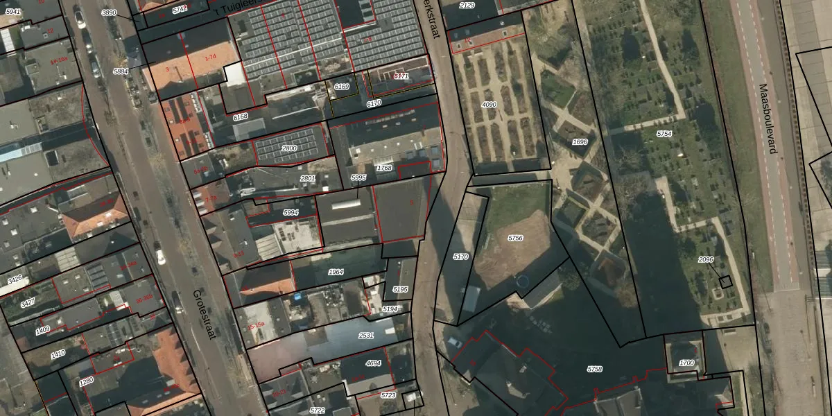Het adres ligt op het perceel CUI00-C-5995, dat zich in de kadastrale gemeente Cuijk bevindt. De gemiddelde perceelgrootte in Cuijk is 3860,42 m². Dit perceel is kleiner: de perceeloppervlakte bedraagt 442 m². De grootste perceeloppervlakte in de kadastrale gemeente is 72,5 ha. De kleinste oppervlakte bedraagt 0 m². Op het perceel zijn 6 adressen aanwezig. De laatste wijziging in het de Basisregistratie Kadaster (BRK) was op 04-06-2019.