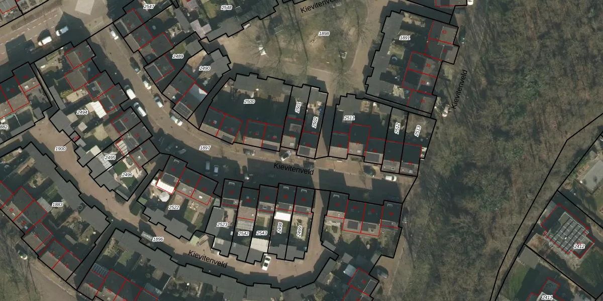 Gebruik de zoekbalk of klik op een perceel voor informatie over de adressen binnen dit perceel.