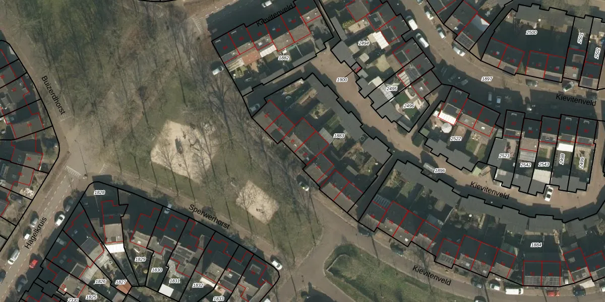 Het perceel waarop Kievitenveld 76 staat heeft een oppervlakte van 1025 m². Dit is een zeer groot perceel. De perceeloppervlakte wordt geregistreerd door het Kadaster. Gedetailleerde informatie over de maten van dit perceel kunt u vinden in het rapport Kadastrale kaart met maatvoering van Kievitenveld 76.