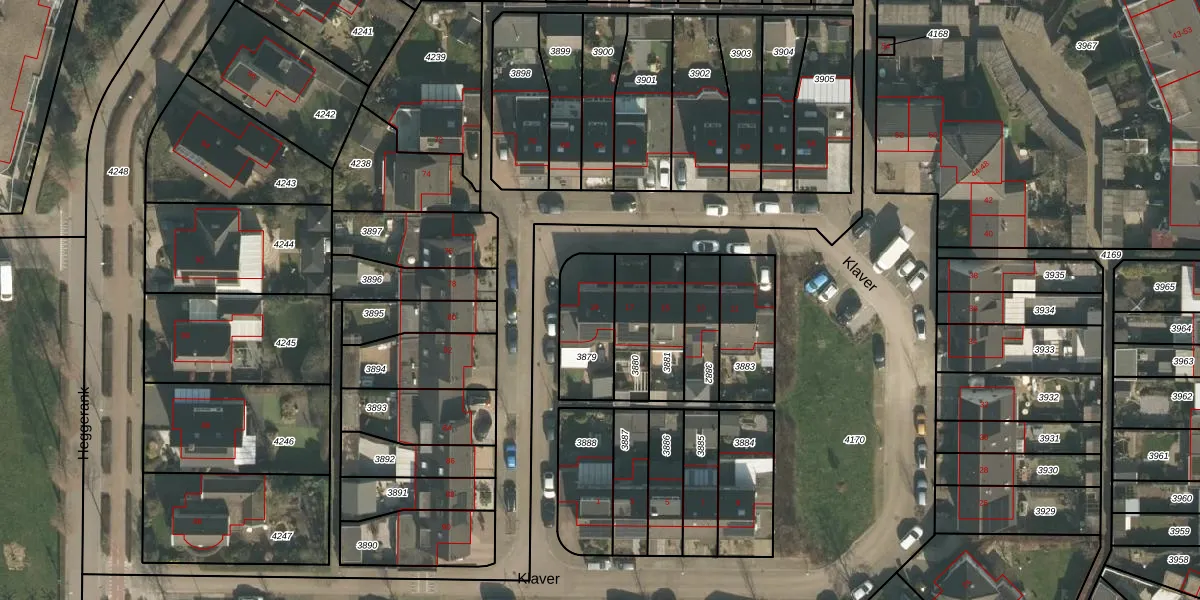 Het perceel waarop Klaver 19 staat heeft een oppervlakte van 220 m². Dit is een middelgroot perceel. De perceeloppervlakte wordt geregistreerd door het Kadaster. Gedetailleerde informatie over de maten van dit perceel kunt u vinden in het rapport Kadastrale kaart met maatvoering van Klaver 19.