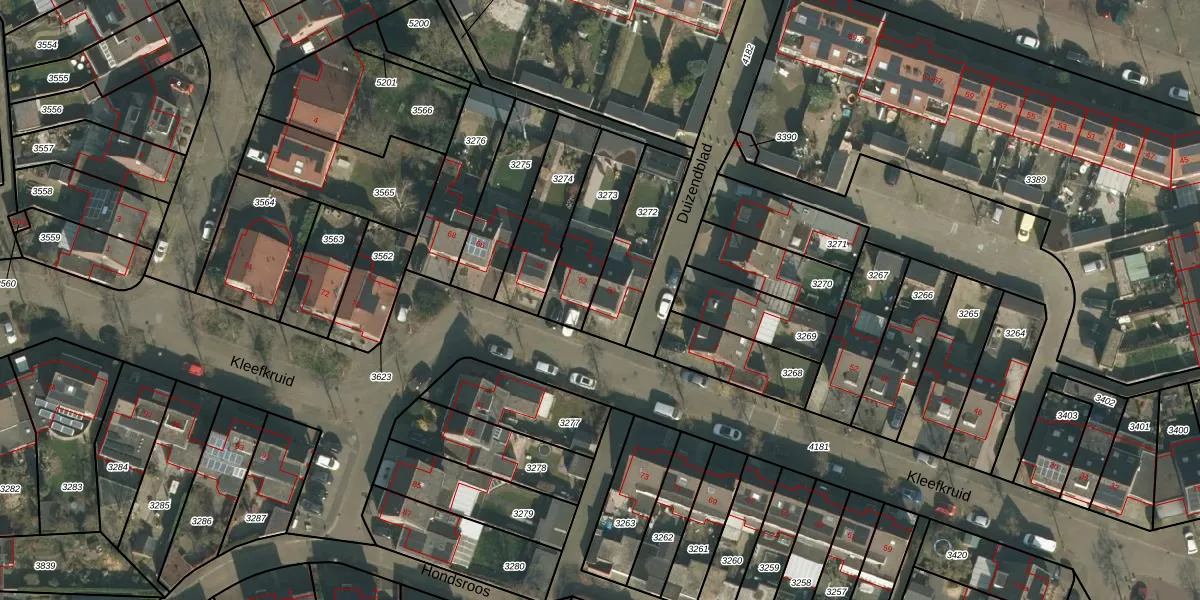 Het perceel waarop Kleefkruid 60 staat heeft een oppervlakte van 258 m². Dit is een middelgroot perceel. De perceeloppervlakte wordt geregistreerd door het Kadaster. Gedetailleerde informatie over de maten van dit perceel kunt u vinden in het rapport Kadastrale kaart met maatvoering van Kleefkruid 60.