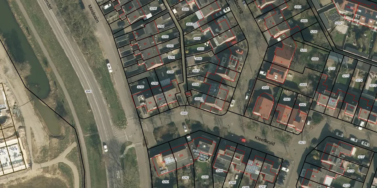 Gebruik de zoekbalk of klik op een perceel voor informatie over de adressen binnen dit perceel.
