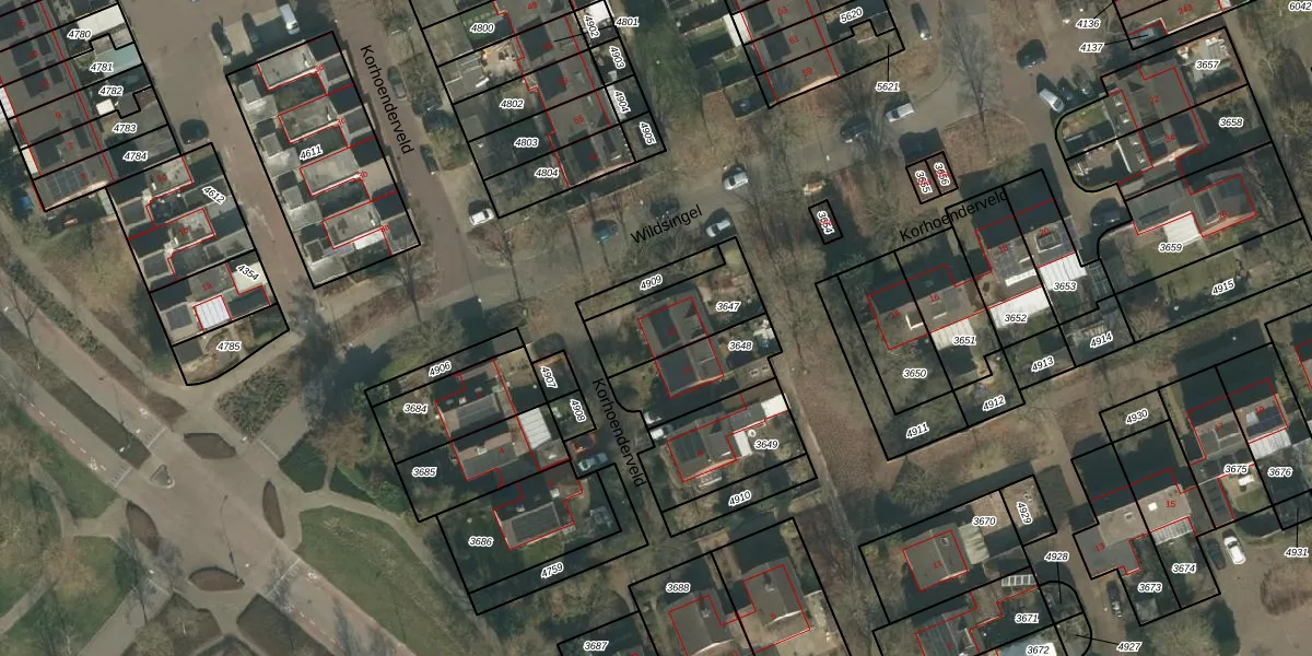 Gebruik de zoekbalk of klik op een perceel voor informatie over de adressen binnen dit perceel.