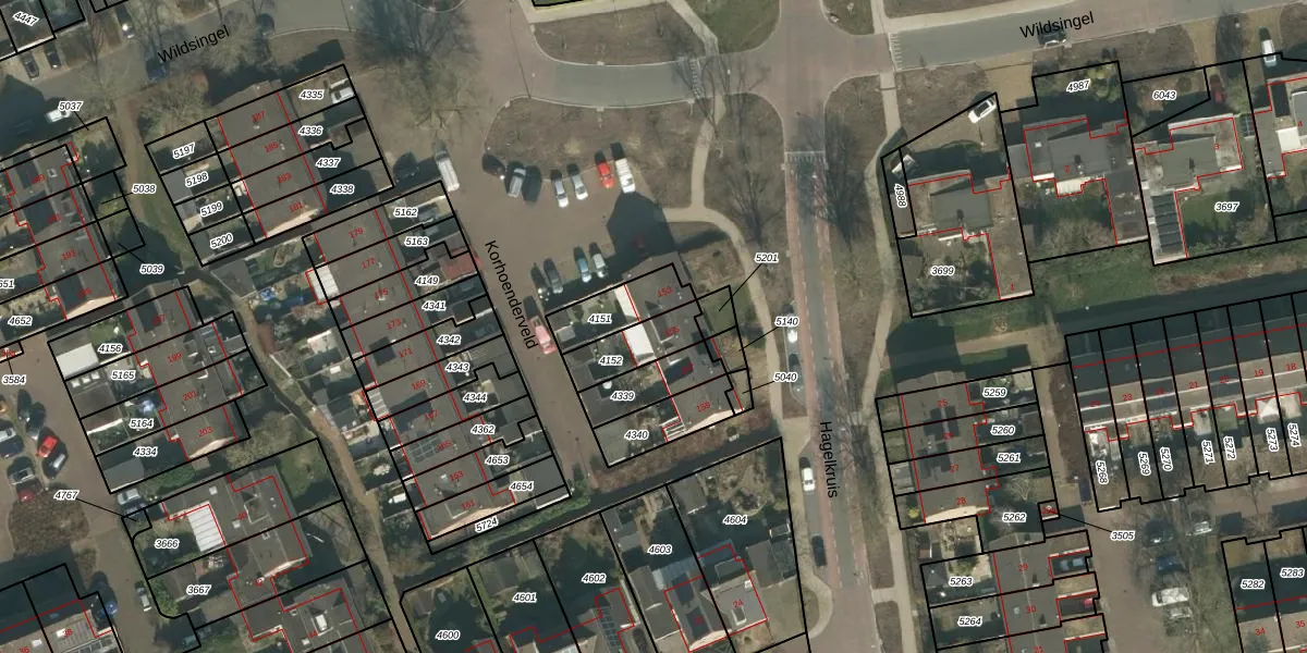 Korhoenderveld 155 is gelegen op kadastraal perceel CUI00C4152. Deze kadastrale aanduiding is uniek en wordt gebruikt door het Kadaster om eigendomsrechten en andere zakelijke rechten vast te leggen. Het perceel maakt onderdeel uit van de kadastrale gemeente Cuijk.