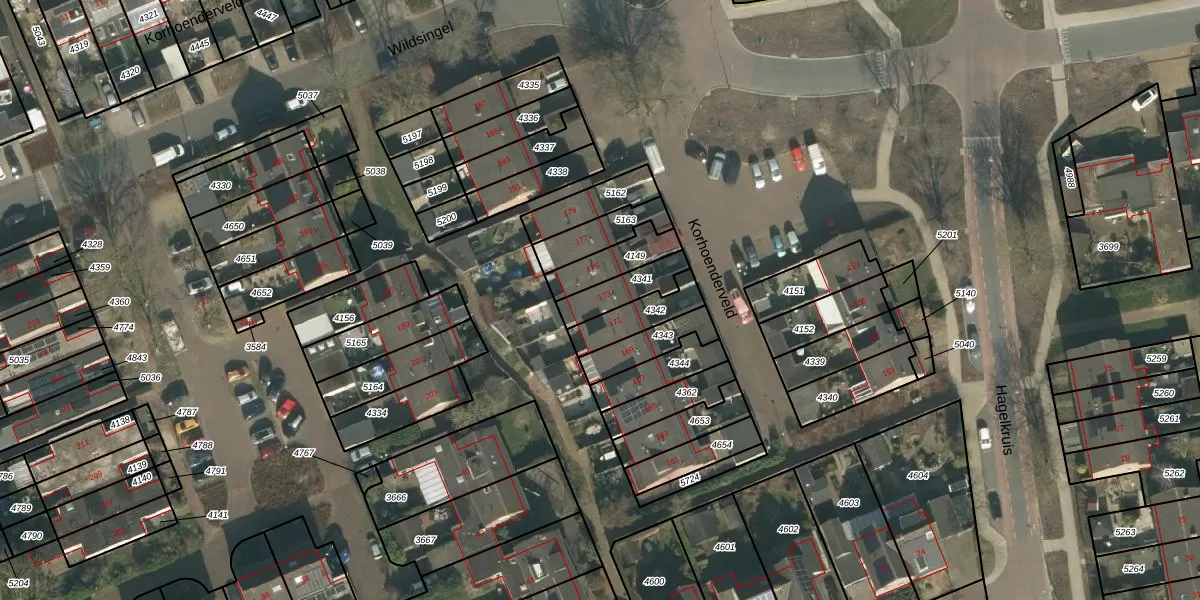 Het perceel waarop Korhoenderveld 173 staat heeft een oppervlakte van 115 m². Dit is een middelgroot perceel. De perceeloppervlakte wordt geregistreerd door het Kadaster. Gedetailleerde informatie over de maten van dit perceel kunt u vinden in het rapport Kadastrale kaart met maatvoering van Korhoenderveld 173.
