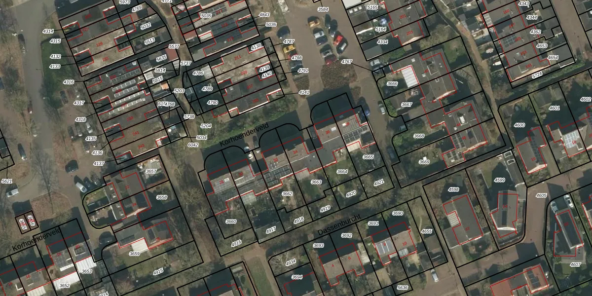 Het perceel waarop Korhoenderveld 34 staat heeft een oppervlakte van 257 m². Dit is een middelgroot perceel. De perceeloppervlakte wordt geregistreerd door het Kadaster. Gedetailleerde informatie over de maten van dit perceel kunt u vinden in het rapport Kadastrale kaart met maatvoering van Korhoenderveld 34.