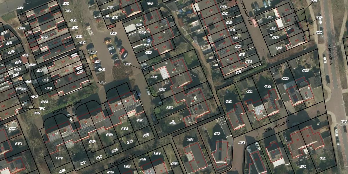 Gebruik de zoekbalk of klik op een perceel voor informatie over de adressen binnen dit perceel.