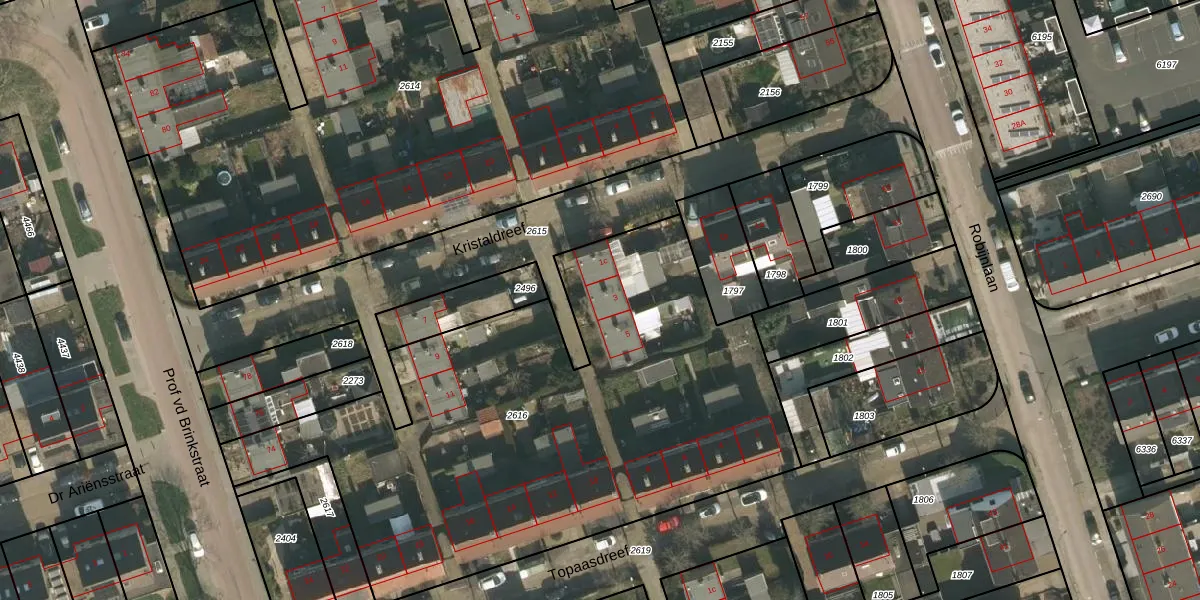 Het perceel waarop Kristaldreef 3 staat heeft een oppervlakte van 3004 m². Dit is een zeer groot perceel. De perceeloppervlakte wordt geregistreerd door het Kadaster. Gedetailleerde informatie over de maten van dit perceel kunt u vinden in het rapport Kadastrale kaart met maatvoering van Kristaldreef 3.