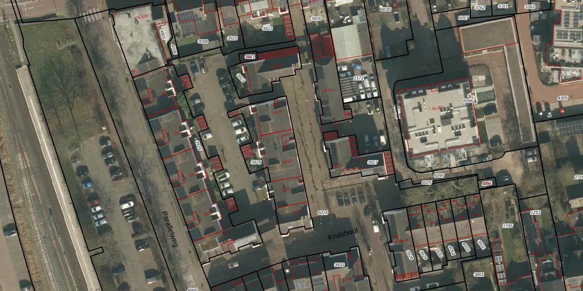 Het perceel waarop Kruishout 25 staat heeft een oppervlakte van 654 m². Dit is een groot perceel. De perceeloppervlakte wordt geregistreerd door het Kadaster. Gedetailleerde informatie over de maten van dit perceel kunt u vinden in het rapport Kadastrale kaart met maatvoering van Kruishout 25.