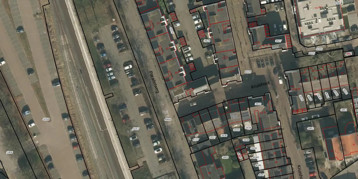 Kruishout 5 is gelegen op kadastraal perceel CUI00C3925. Deze kadastrale aanduiding is uniek en wordt gebruikt door het Kadaster om eigendomsrechten en andere zakelijke rechten vast te leggen. Het perceel maakt onderdeel uit van de kadastrale gemeente Cuijk.