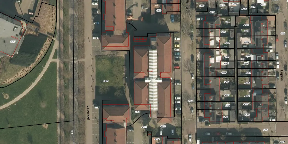 Het perceel waarop Lavendel 104 staat heeft een oppervlakte van 5144 m². Dit is een zeer groot perceel. De perceeloppervlakte wordt geregistreerd door het Kadaster. Gedetailleerde informatie over de maten van dit perceel kunt u vinden in het rapport Kadastrale kaart met maatvoering van Lavendel 104.