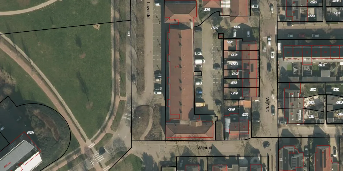 Lavendel 12 is gelegen op kadastraal perceel CUI00A4301. Deze kadastrale aanduiding is uniek en wordt gebruikt door het Kadaster om eigendomsrechten en andere zakelijke rechten vast te leggen. Het perceel maakt onderdeel uit van de kadastrale gemeente Cuijk.