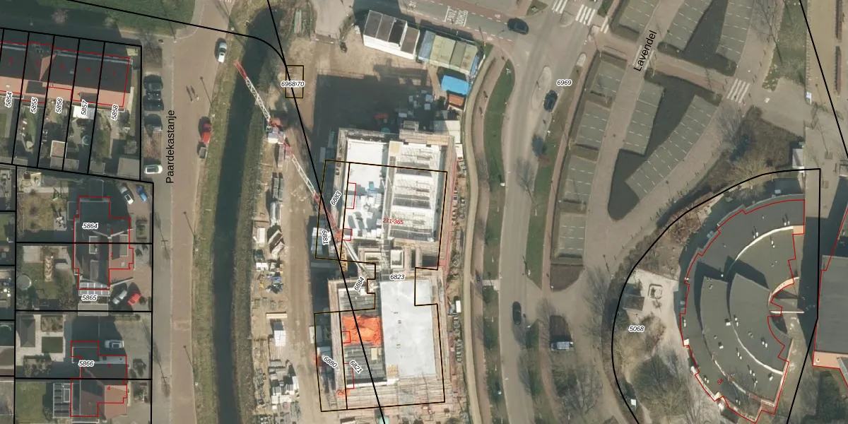 Het perceel waarop Lavendel 327 staat heeft een oppervlakte van 1044 m². Dit is een zeer groot perceel. De perceeloppervlakte wordt geregistreerd door het Kadaster. Gedetailleerde informatie over de maten van dit perceel kunt u vinden in het rapport Kadastrale kaart met maatvoering van Lavendel 327.