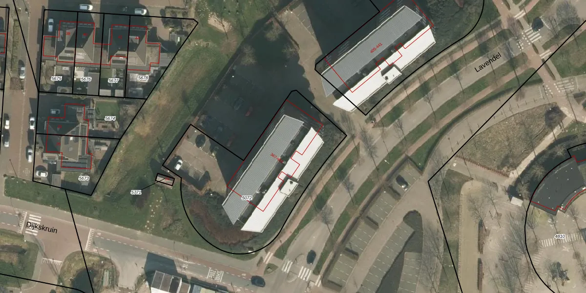 Lavendel 379 is gelegen op kadastraal perceel CUI00A5072. Deze kadastrale aanduiding is uniek en wordt gebruikt door het Kadaster om eigendomsrechten en andere zakelijke rechten vast te leggen. Het perceel maakt onderdeel uit van de kadastrale gemeente Cuijk.