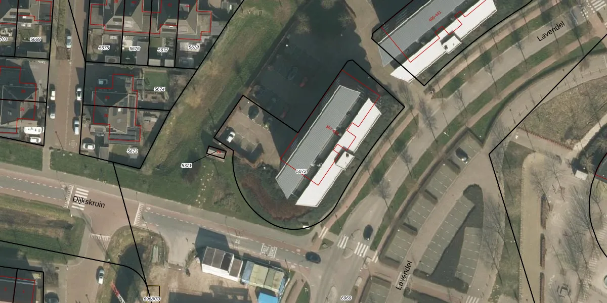 Het perceel waarop Lavendel 393 staat heeft een oppervlakte van 1789 m². Dit is een zeer groot perceel. De perceeloppervlakte wordt geregistreerd door het Kadaster. Gedetailleerde informatie over de maten van dit perceel kunt u vinden in het rapport Kadastrale kaart met maatvoering van Lavendel 393.