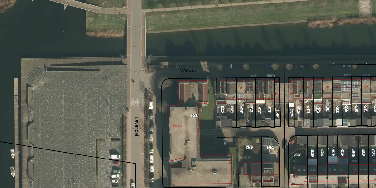 Het perceel waarop Lavendel 444 staat heeft een oppervlakte van 1989 m². Dit is een zeer groot perceel. De perceeloppervlakte wordt geregistreerd door het Kadaster. Gedetailleerde informatie over de maten van dit perceel kunt u vinden in het rapport Kadastrale kaart met maatvoering van Lavendel 444.