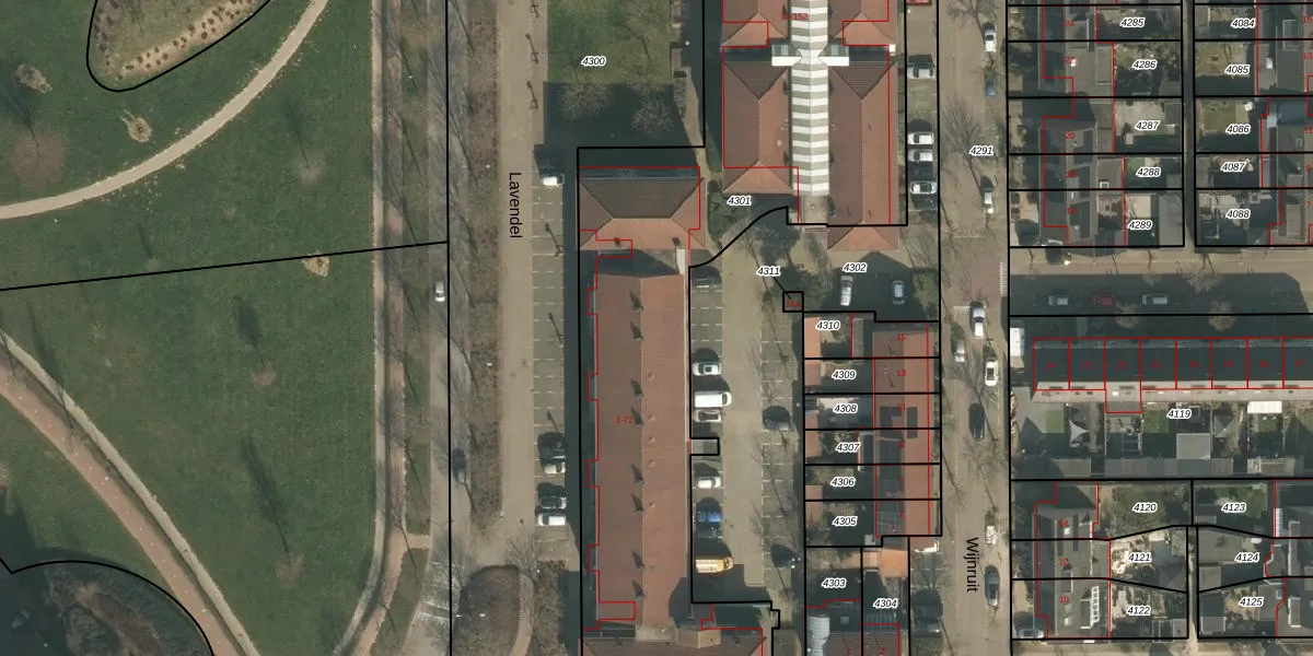 Lavendel 66 is gelegen op kadastraal perceel CUI00A4301. Deze kadastrale aanduiding is uniek en wordt gebruikt door het Kadaster om eigendomsrechten en andere zakelijke rechten vast te leggen. Het perceel maakt onderdeel uit van de kadastrale gemeente Cuijk.