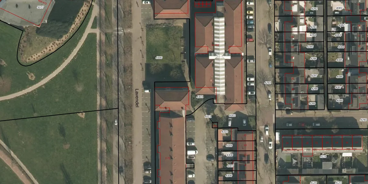 Lavendel 72 is gelegen op kadastraal perceel CUI00A4301. Deze kadastrale aanduiding is uniek en wordt gebruikt door het Kadaster om eigendomsrechten en andere zakelijke rechten vast te leggen. Het perceel maakt onderdeel uit van de kadastrale gemeente Cuijk.