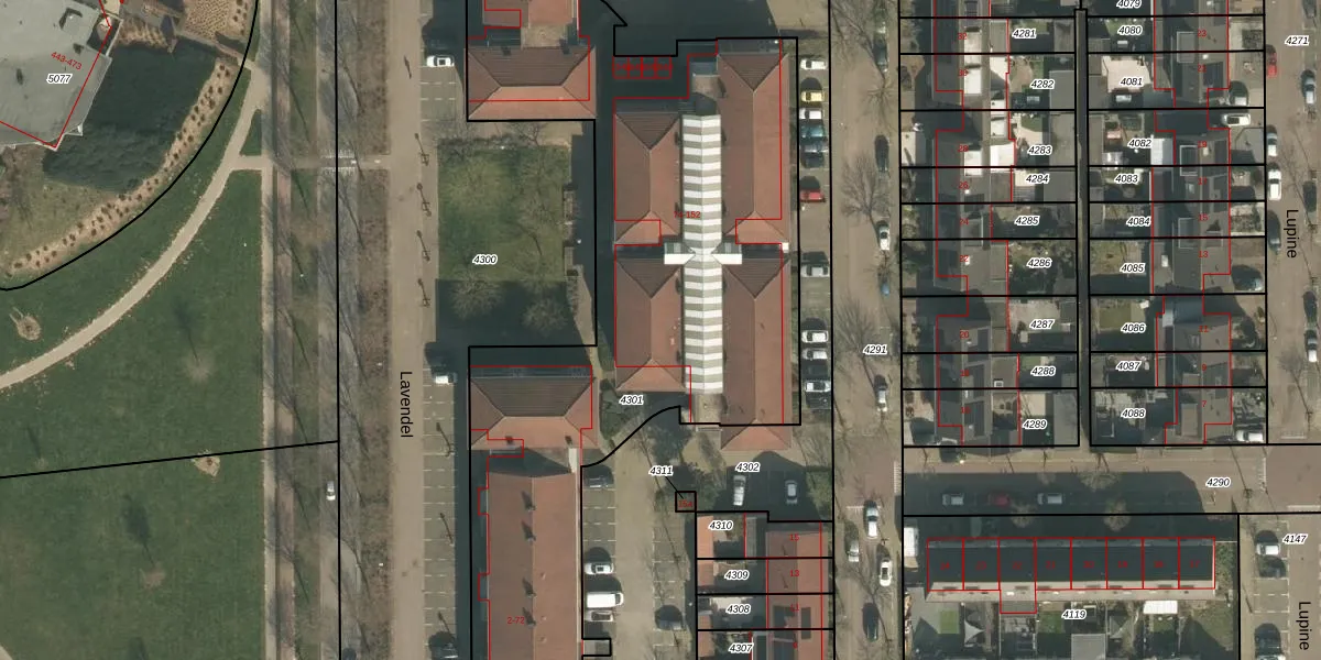 Het perceel waarop Lavendel 96 staat heeft een oppervlakte van 5144 m². Dit is een zeer groot perceel. De perceeloppervlakte wordt geregistreerd door het Kadaster. Gedetailleerde informatie over de maten van dit perceel kunt u vinden in het rapport Kadastrale kaart met maatvoering van Lavendel 96.