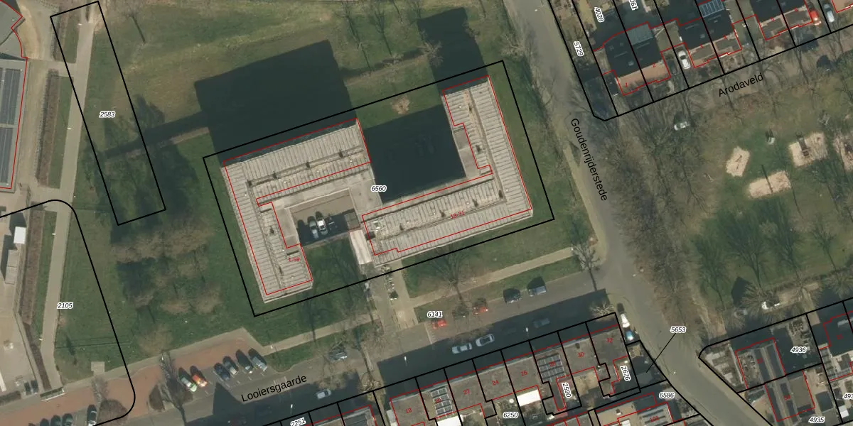 Het perceel waarop Looiersgaarde 15 staat heeft een oppervlakte van 2865 m². Dit is een zeer groot perceel. De perceeloppervlakte wordt geregistreerd door het Kadaster. Gedetailleerde informatie over de maten van dit perceel kunt u vinden in het rapport Kadastrale kaart met maatvoering van Looiersgaarde 15.