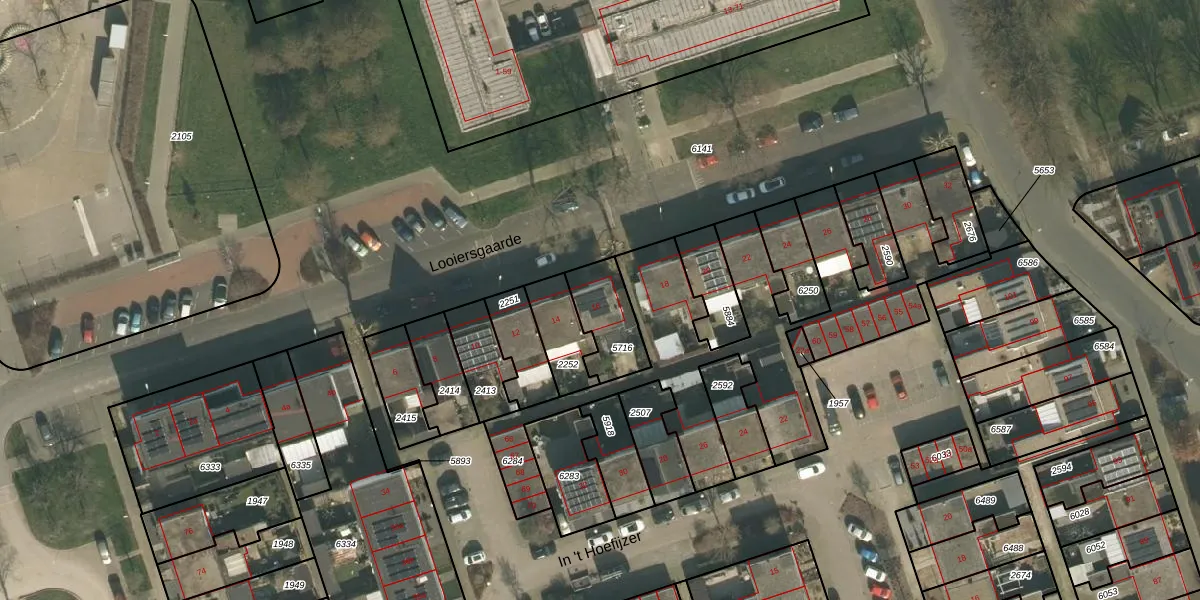 Het perceel waarop Looiersgaarde 16 staat heeft een oppervlakte van 175 m². Dit is een middelgroot perceel. De perceeloppervlakte wordt geregistreerd door het Kadaster. Gedetailleerde informatie over de maten van dit perceel kunt u vinden in het rapport Kadastrale kaart met maatvoering van Looiersgaarde 16.