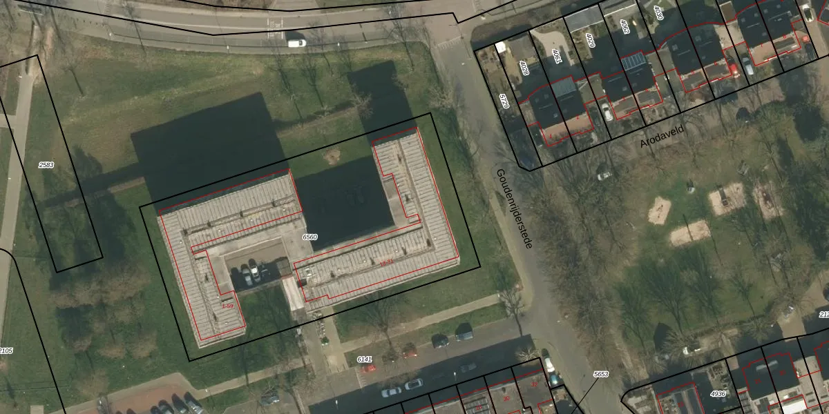 Het perceel waarop Looiersgaarde 21 staat heeft een oppervlakte van 2865 m². Dit is een zeer groot perceel. De perceeloppervlakte wordt geregistreerd door het Kadaster. Gedetailleerde informatie over de maten van dit perceel kunt u vinden in het rapport Kadastrale kaart met maatvoering van Looiersgaarde 21.