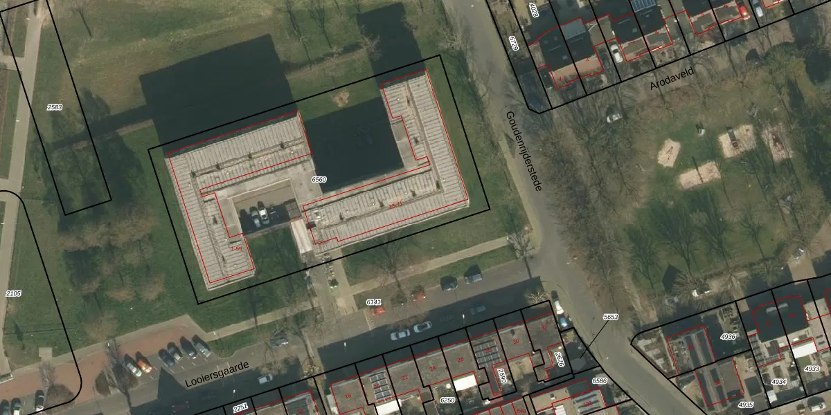 Looiersgaarde 65 is gelegen op kadastraal perceel CUI00A6560. Deze kadastrale aanduiding is uniek en wordt gebruikt door het Kadaster om eigendomsrechten en andere zakelijke rechten vast te leggen. Het perceel maakt onderdeel uit van de kadastrale gemeente Cuijk.