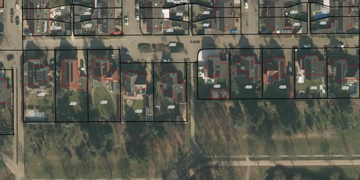 Het perceel waarop Look 6-a staat heeft een oppervlakte van 602 m². Dit is een groot perceel. De perceeloppervlakte wordt geregistreerd door het Kadaster. Gedetailleerde informatie over de maten van dit perceel kunt u vinden in het rapport Kadastrale kaart met maatvoering van Look 6-a.