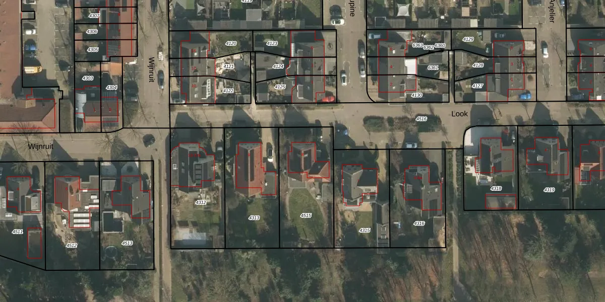 Het perceel waarop Look 8 staat heeft een oppervlakte van 723 m². Dit is een groot perceel. De perceeloppervlakte wordt geregistreerd door het Kadaster. Gedetailleerde informatie over de maten van dit perceel kunt u vinden in het rapport Kadastrale kaart met maatvoering van Look 8.