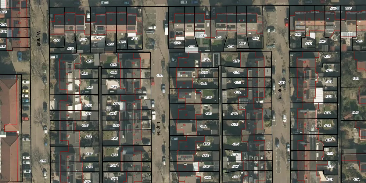 Gebruik de zoekbalk of klik op een perceel voor informatie over de adressen binnen dit perceel.