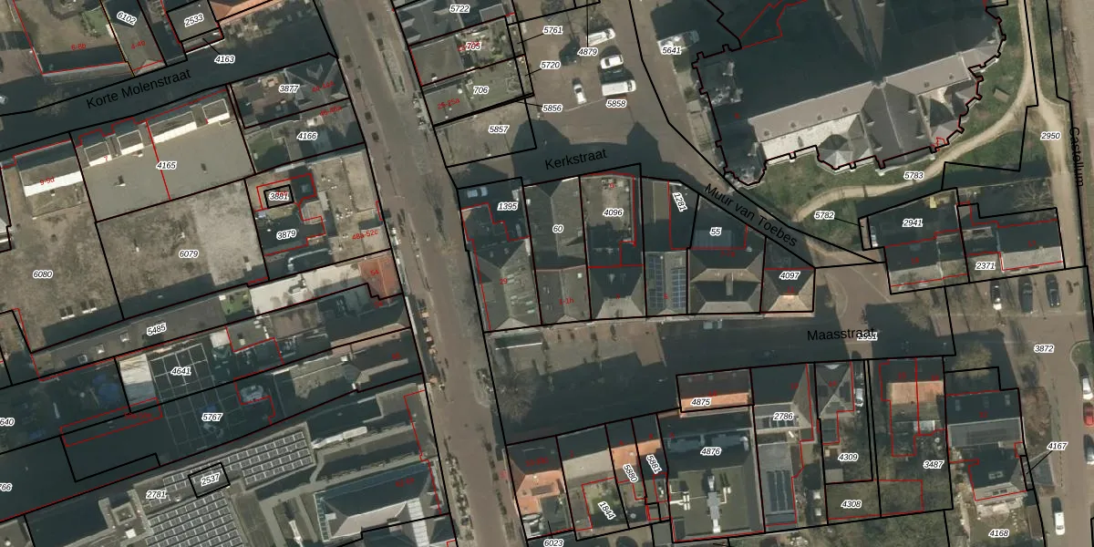 Maasstraat 1-a is gelegen op kadastraal perceel CUI00C60. Deze kadastrale aanduiding is uniek en wordt gebruikt door het Kadaster om eigendomsrechten en andere zakelijke rechten vast te leggen. Het perceel maakt onderdeel uit van de kadastrale gemeente Cuijk.